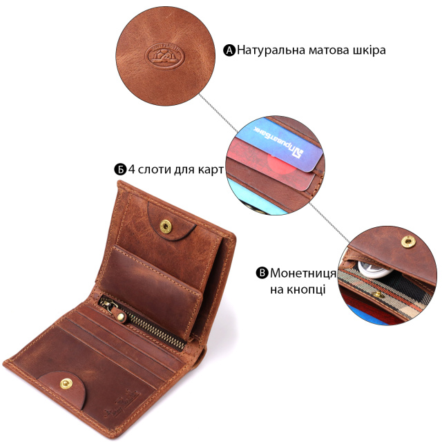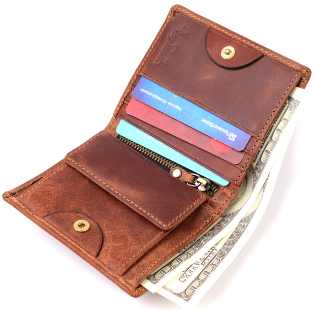 - удобная организация: одно отделение, четыре слота для карт, монетница на кнопке и вертикальный карман на молнии;
