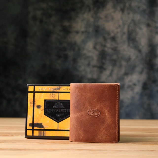 Практичный мужской кошелек Tony Perotti – стиль, который говорит за вас. Идеальный аксессуар для современного мужчины, ценящего качество и элегантность. Кошелек выполнен из матовой натуральной кожи премиального качества в стильном светло-коричневом цвете. Лаконичный дизайн с тисненым логотипом Tony Perotti в центре делает его универсальным и статусным. Такой кошелек становится не просто аксессуаром, а отражением характера: уверенность, вкус и внимание к деталям. Подходит как для ежедневного использования, так и в качестве подарка мужчине, который ценит настоящее качество.