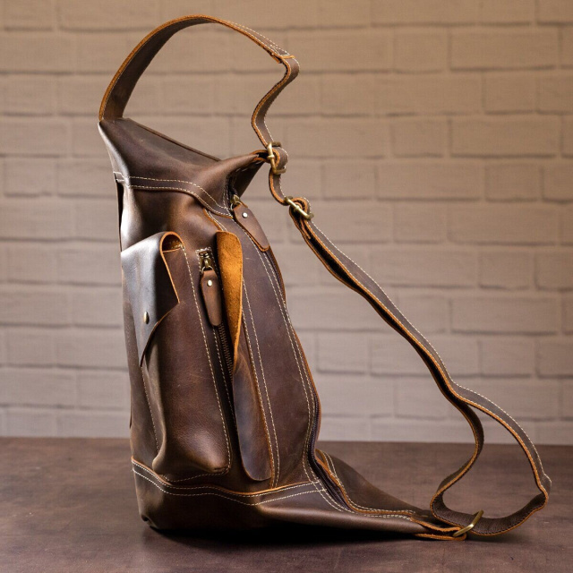 Очень интересная и оригинальная и интересная мужская сумка из матовой кожи. Сумка довольно модно и дорого выглядит. Будет удобно с такой сумкой ходить в зал. Вам не придется с таким рюкзаком все нести с собой в руках. Аксессуар выполнен из плотной телячьей кожи. Со временем сумка будет выглядеть еще эффектнее за счет особенностей такой кожи.