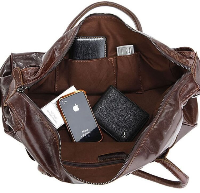Высококачественная дорожная сумка из отличной натуральной кожи. Сумка имеет удобные кожаные ручки и плечевой ремень. Закрывается сумка при помощи молнии. Внутри есть одно большое отделение, потайной карман на молнии, два небольших накладных кармана. На дне сумки имеются ножки. Сумка очень практична, подойдет для недлительных командировок и путешествий. Данный кожаный саквояж имеет сногсшибательный внешний вид и прекрасный дизайн. Такая кожаная дорожная сумка сможет подчеркнуть статус своего владельца. Сумка подходит как мужчинам так и женщинам.