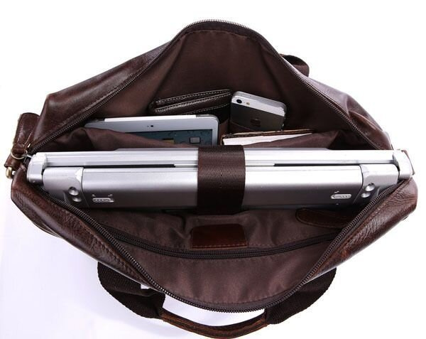 Удобная мужская кожаная сумка из натуральной высококачественной кожи. Эта мужская сумка превосходно подойдет для ноутбука 14 дюймов, планшета, папки с документами формата А4, мобильного телефона и прочих аксессуаров необходимых.