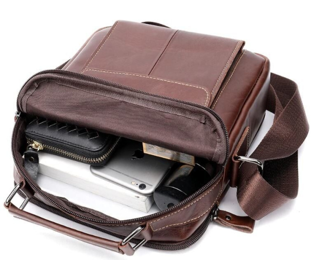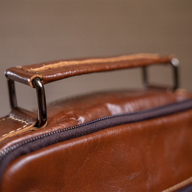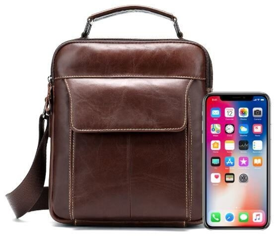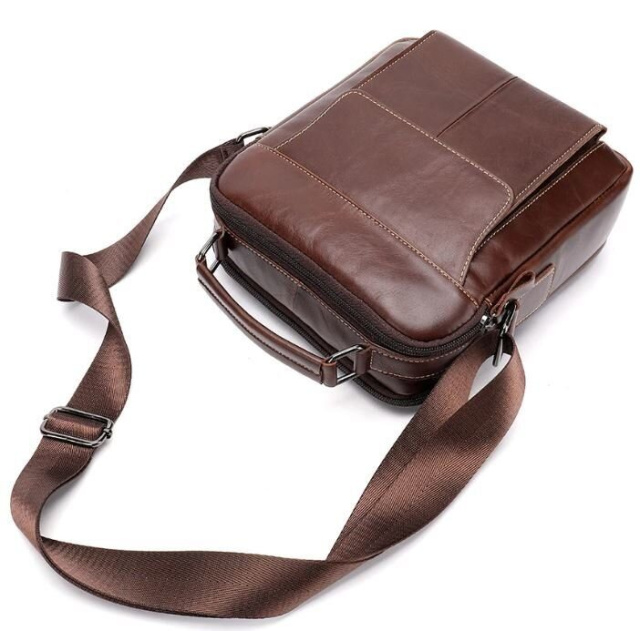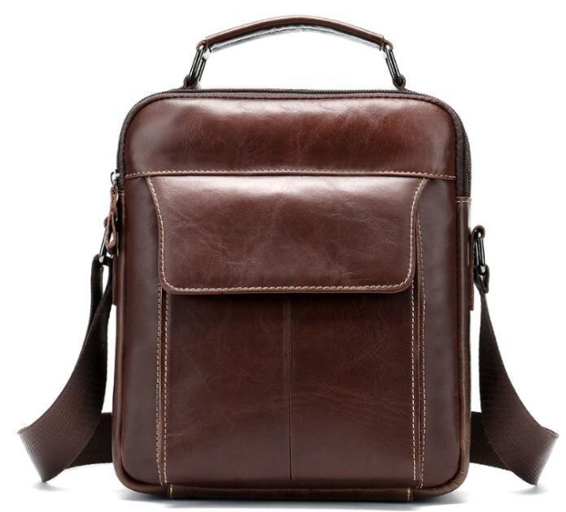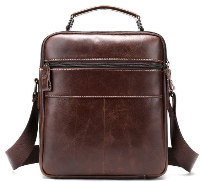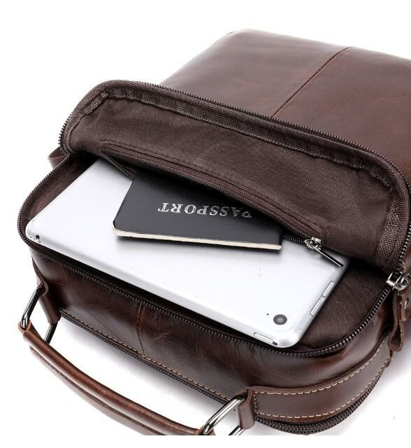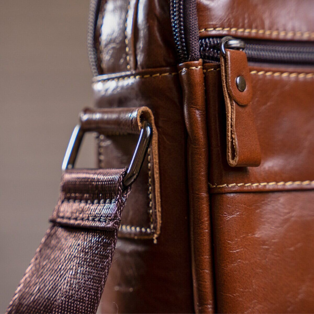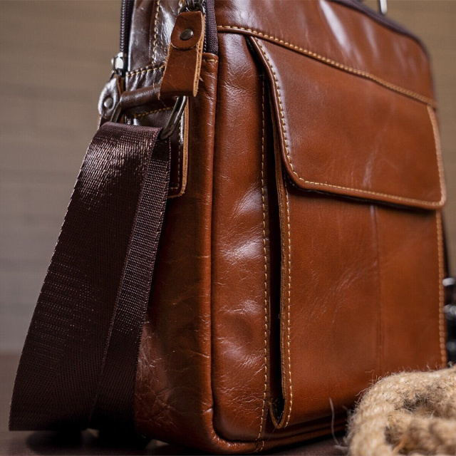 С такой сумкой на каждый день вам будет очень удобно. Аксессуар изготовлен из натуральной кожи хорошего качества. По краям прошит светлой нитью. Сумка имеет отличный функционал идеальный для любого мужчины. В сумку поместится небольшая бутылка воды, ежедневник и планшет. Аксессуар будет отличным подарком для близкого.