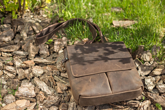 Сумка средних размеров из натуральной кожи для мужчин, которые ежедневно носят с собой много мелких вещей (ключи, телефон, блокнот, портмоне, небольшой планшет, и т.д.).