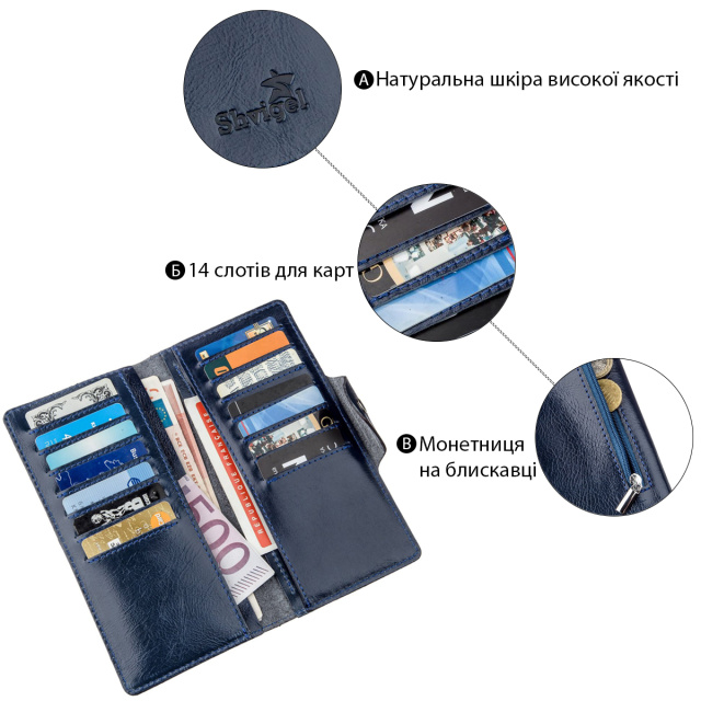 - 14 отделений для пластиковых карточек.