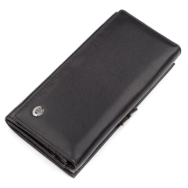 Привлекательная модель кошелька выполнена в строгом, но элегантном, классическом черном цвете, имея приятную фактуру натуральной кожи, благодаря чему приятно лежит в руках. Фурнитура сделана в серебряном цвете, а внутреннее оснащение обладает всеми необходимыми отделениями и отсеками для банкнот, пластиковых карт, а также монетницы, расположенной снаружи. Порадует многих и фирменная коробка, которая подойдет в качестве подарочной для близких и друзей.