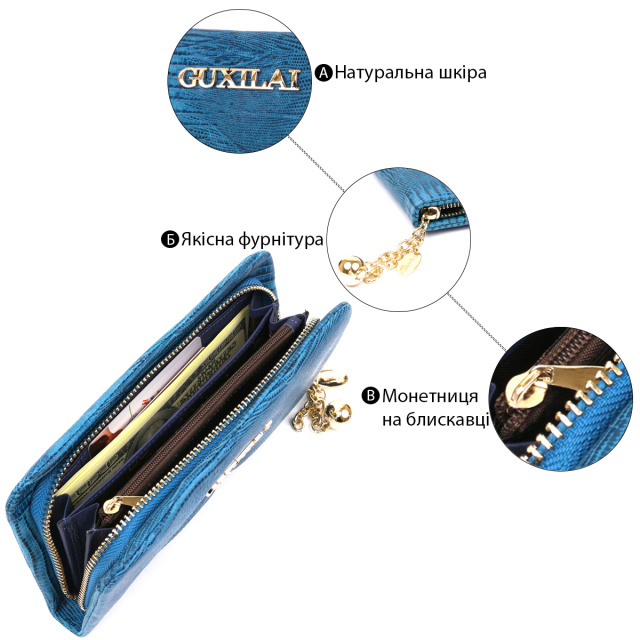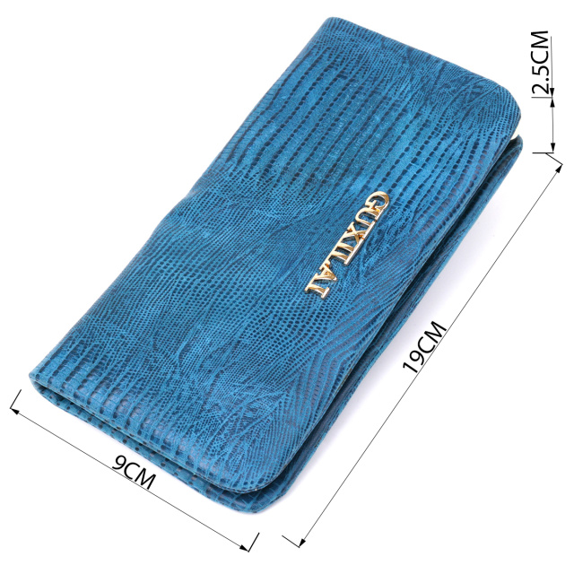 Синий женский кошелек с оригинальным тиснением. Модель мягкая и приятная на ощупь. Оригинальный дизайн модели оценит любая девушка. Кошелек компактный, а дизайн изделия продуман до самих мелочей. Внутри кошелька просторные отделения для купюр, ячейки для карточек и открытые карманы. Аксессуар будет прекрасным подарком для любой девушки. В комплекте к изделию идет картонная коробка мятного цвета.