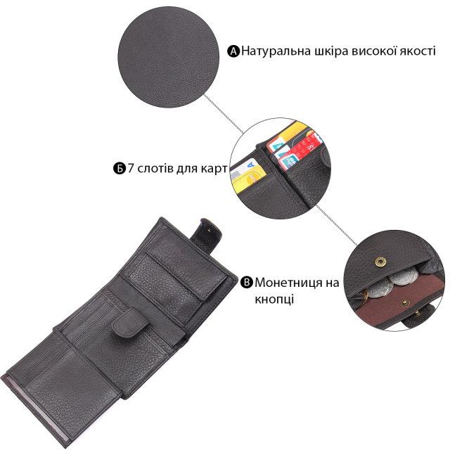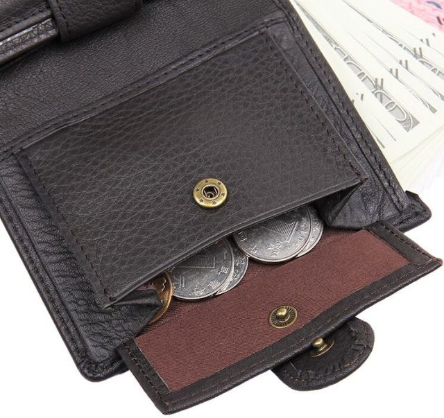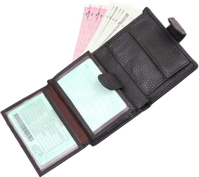 Вместительный кожаный кошелек, несмотря на свой размер очень удобный и функциональный.