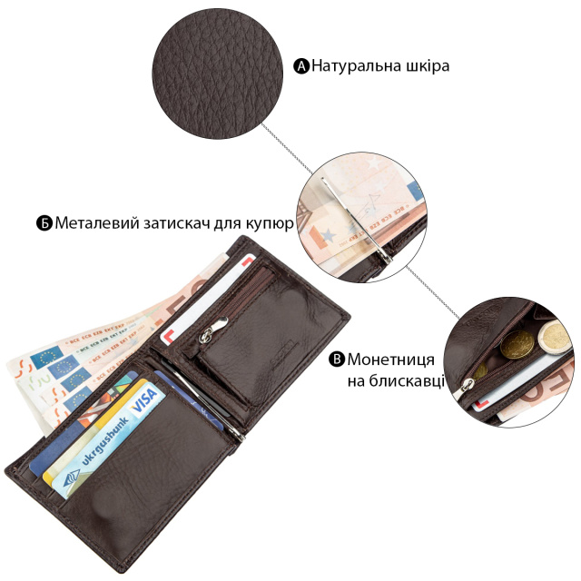 - мужское портмоне из натуральной кожи на магните;