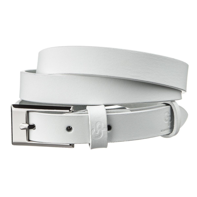 Тонкий женский ремешок из натуральной кожи нежного белого цвета. Изделие будет прекрасным дополнением к платью, брюкам или рубашке. Кожаный ремень – это классика и надежность. Изделие изготовлено из итальянской кожи. Мы уверены, что модель долго проносится и принесет вам только положительные впечатления. Ремень стал необходимым аксессуаром не только для мужчин, но и для женщин. Кожаный ремешок прекрасно подчеркнет вашу талию и завершит образ. Также, доступна похожая модель с другой пряжкой 11253.