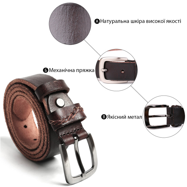 Ремень премиум класса из высококачественной натуральной кожи. Дополнен аксессуар солидной пряжкой с надежного металлического сплава. Ремень регулируется по длине в меньшую сторону, сделать это очень просто, нужно всего лишь открутить винтик возле пряжки, отрезать лишнюю часть и прикрутить обратно.