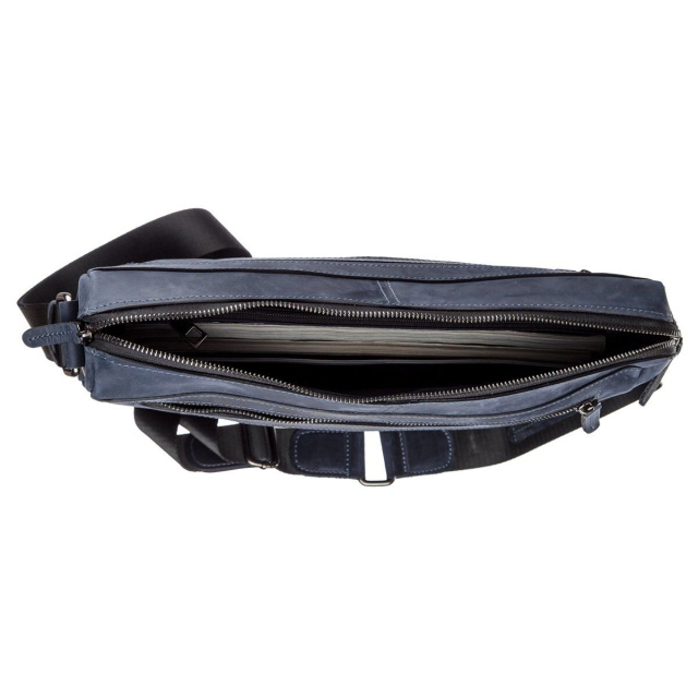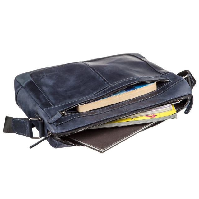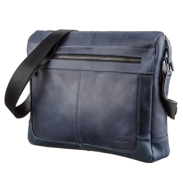 Деловая сумка из натуральной кожи высокого качества. Изделие популярного и оригинального синего цвета. Винтажная кожа выглядит очень дорого и стильно. Дизайн сумки продуман до мелочей. Вы можете носить сумку на плече. Внутри изделия качественная текстильная подкладка. Ручка сумки не снимается. На лицевой и тыльной стороне аксессуара карманы на молнии. Модель упакована в тканевый мешок.