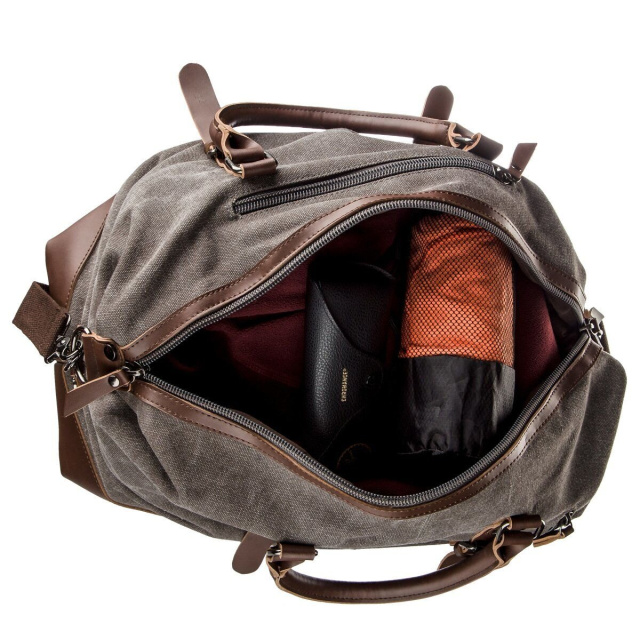 Вместительная походная сумка среднего размера серого цвета из прочного текстиля. Сумка имеет оптимальный размер для небольшой поездки или для похода в зал. Снизу изделия уплотненное дно с металлическими ножками, которые защищают дно от потертостей и царапин. Вы можете носить сумку, как в руках, так и через плечо с помощью съемного плечевого ремешка. Модель доступна в разных цветах и размерах на нашем сайте.