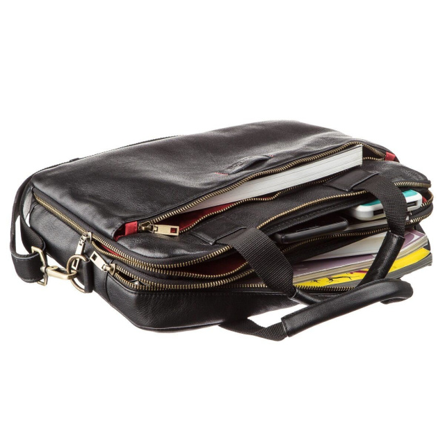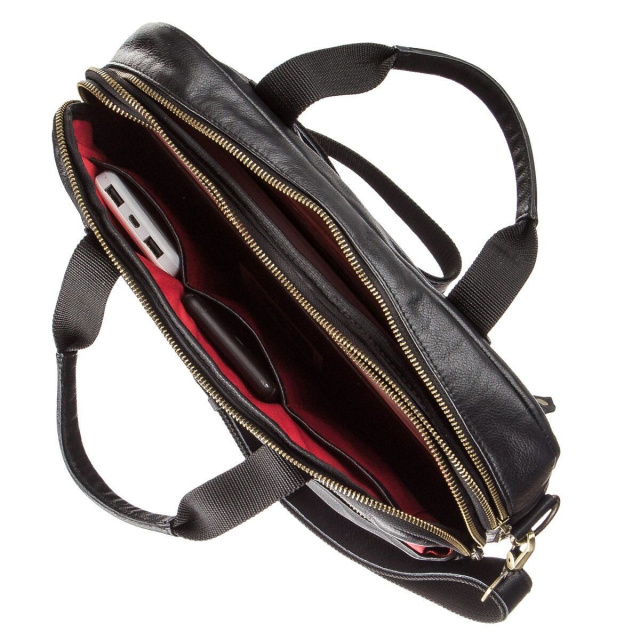 Сумка для ноутбука диагональю 14 дюймов и ниже. Изделие изготовлено из натуральной кожи высочайшего качества. Два отделения сумки помогут вам разместить в нее не только ноутбук, но и необходимые бумаги или документы. Сумка будет прекрасным помощником на встречах или командировках, а также на каждый день. Внутри сумки красная текстильная подкладка и съемный текстильный ремешок с кожаной вставкой. На лицевой стороне тисненый логотип бренда с красной строчкой.