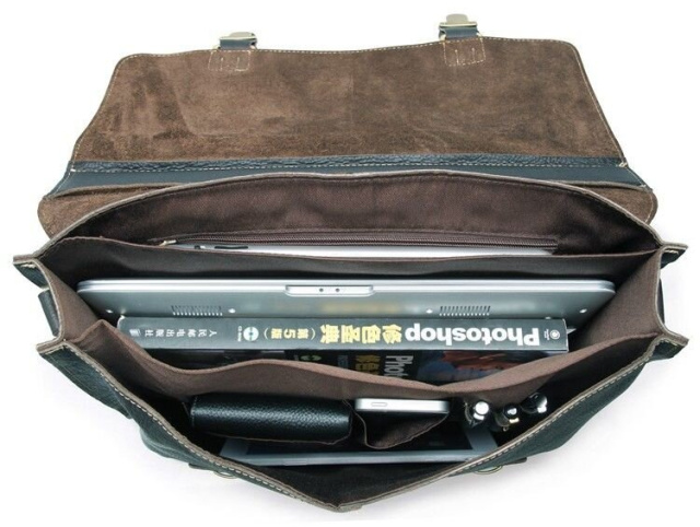 Такой портфель можно переносить в руке при помощи удобной кожаной ручки, а также через плечо (в комплекте съемный, регулируемый плечевой ремень).