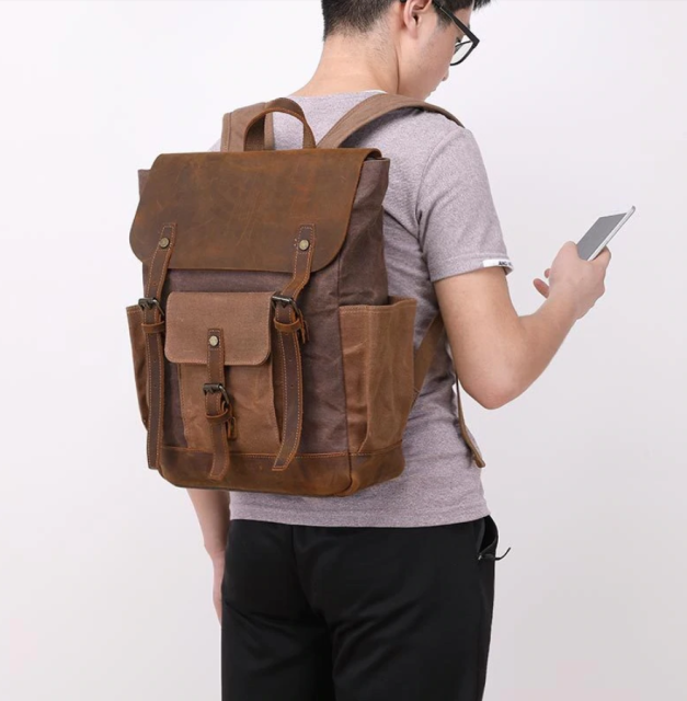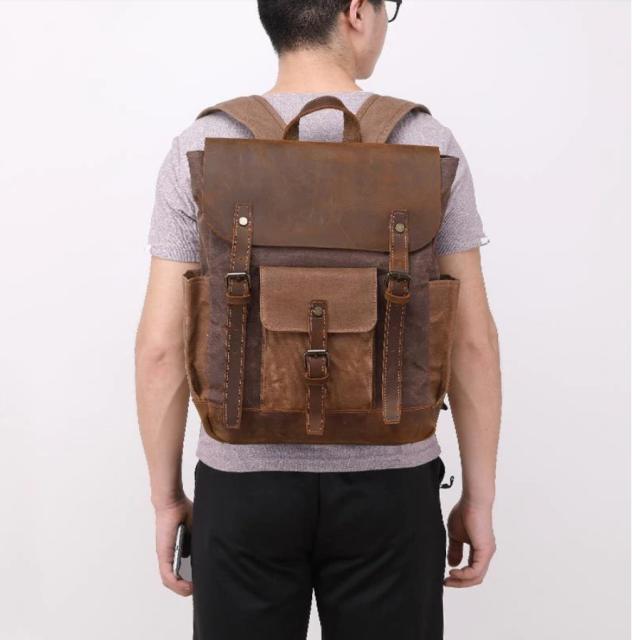 Оригинальный текстильный аксессуар в сочетании с натуральной винтажной кожи, который великолепно комбинируется со стилем кэжуал, спортивным или винтажным. Если Вы искали надежный рюкзак на множество сезонов, то он перед вами. Рюкзак идеально подойдет под стандартный ноутбук. Такой рюкзак – мечта любого путешественника. Стильный рюкзак с качественного текстиля, с надежной фурнитурой, станет неотъемлемым помощником, как в повседневной жизни, так и в путешествиях.