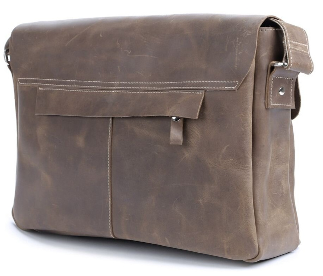 Вместительная мужская сумка через плечо из натуральной высококачественной винтажной кожи. Цвет фурнитуры: серебро. Сумка аккуратно прошита сверхпрочной нитью. Аксессуар закрывается при помощи клапана на защелке и молнией. Под клапаном расположено отделение на молнии. На задней внешней стороне находится карман на молнии. Данная модель изготавливается вручную и в ограниченном количестве. В такой сумке с легкостью помещается папка с документами формата А4.