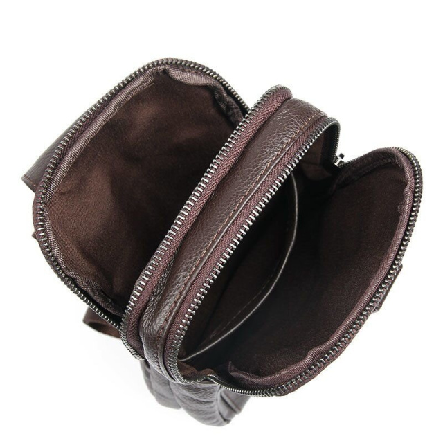 Компактная кожаная мужская сумка из натуральной кожи через плечо. Небольшой размер и легкий вес сумки подкупают клиентов. Модель выполнена в коже флотар, которая совсем не прихотлива в уходе. По краям аксессуар прошит ровной строчкой. Сумка станет прекрасным подарком для любого мужчины.
