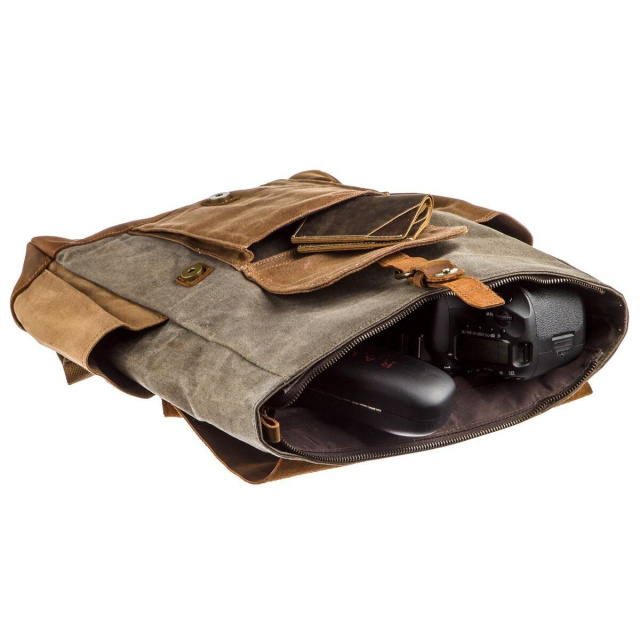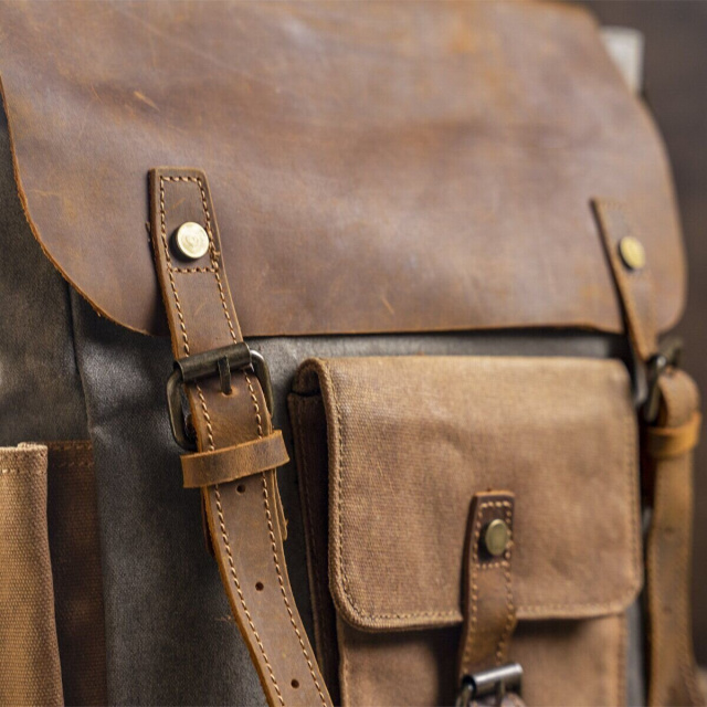 Вместительный походный рюкзак в сочетании прочного текстиля канвас и винтажной кожи. Рюкзак выполнен в очень выигрышной комбинации. Изделие прекрасно будет смотреться с разными стилями одежды от кэжуал до спортивного. Одна модель подойдет на несколько сезонов. Мы на 100 процентов уверены, что вы проносите рюкзак далеко не один год. Дополнен рюкзак удобными боковыми кармашками и карманом на лицевой стороне. В боковые кармашки вы можете поместить бутылку с водой или зонт. Если вы не знаете что подарить путешественнику – купите ему такой рюкзак. Без него не обойдется ни одно путешествие.