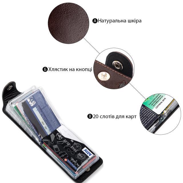 Отличная визитница из натуральной кожи, мягкой и приятной на ощупь. Аксессуар прошит прочной светло-коричневой нитью, что отлично вписывается в дизайн и продлевает срок службы изделия.