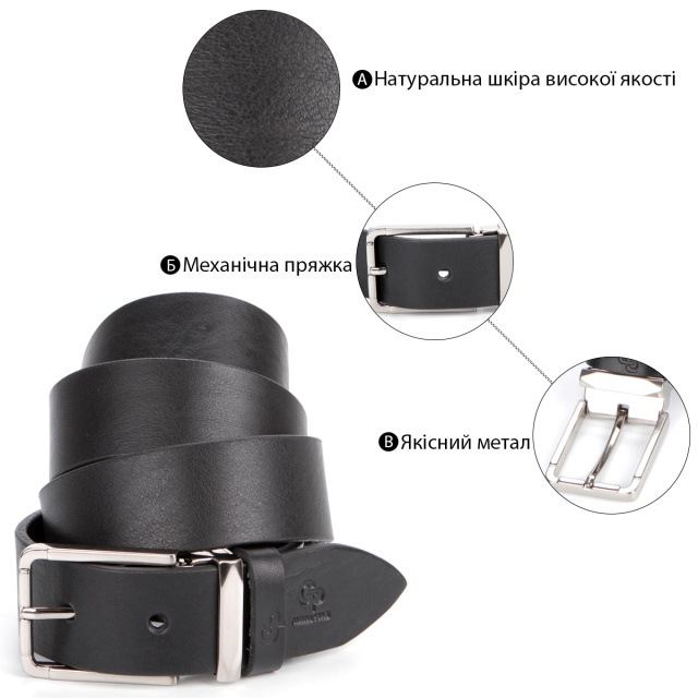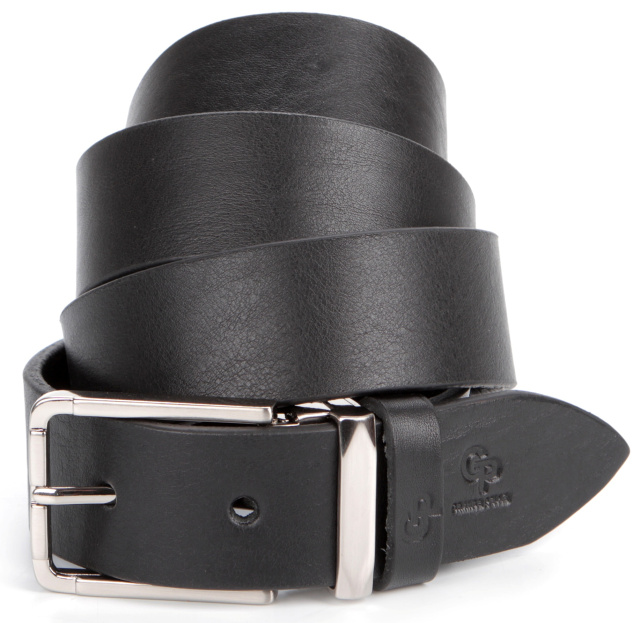 Классический ремень для брюк, который, благодаря универсальному черному цвету, будет отлично сочетаться с одеждой в классическом стиле любого оттенка. Ремень выполнен из кожи высокого качества и лишен лишних дизайнерских деталей - полотно и шлевку украшает небольшое стильное тиснение логотипа бренда-производителя.