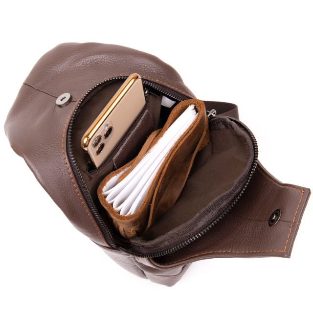 Очень компактная мужская сумка кросс боди из натуральной кожи насыщенного серо-коричневого цвета. Аксессуар можно носить через плечо. Несмотря на свой небольшой размер барсетка достаточно функциональная. Выполнена из мягкой кожи. В изделии вы сможете носить ваши личные вещи (телефон, кошелек, документы). С такой сумочкой они будут в одном месте и в безопасности. Сумка станет прекрасным подарком для ваших близких. Изделие - просто находка для путешественников и водителей.