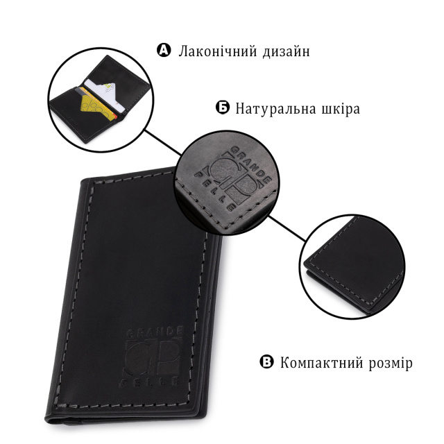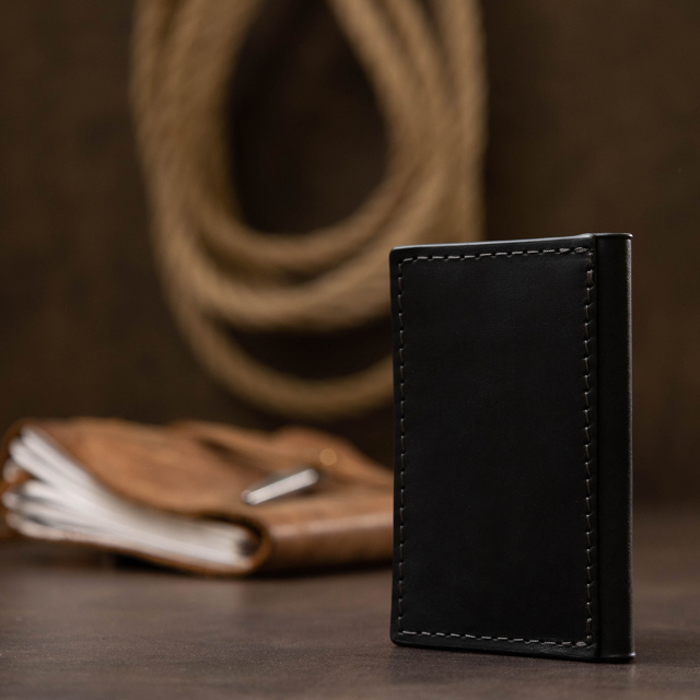 Небольшой кожаный картхолдер для самых важных карт, которые всегда должны быть рядом. Материал изготовления – натуральная кожа высокого качества. Имеет гладкую фактуру и универсальный черный цвет, поэтому подойдет и женщинам, и мужчинам. Упакован аксессуар в фирменный чехол.