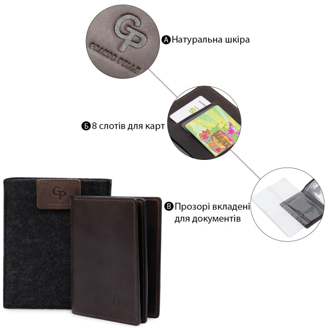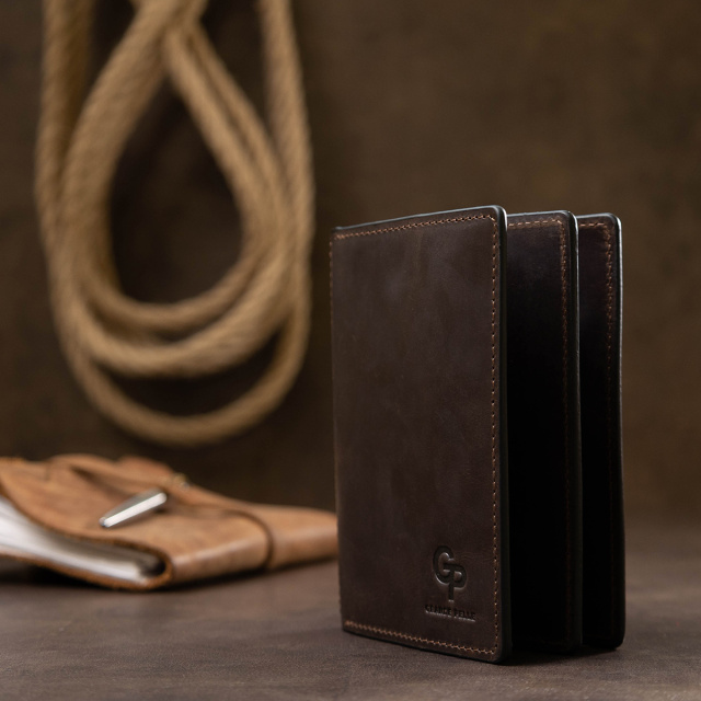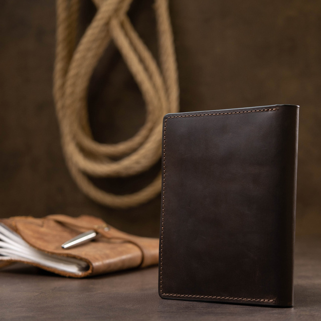 Отличный аксессуар для тех, кто хочет иметь все самые важные документы под рукой. Материал изготовления – натуральная износоустойчивая кожа с гладкой винтажной фактурой. Цвет изделия – шоколадный, что смотрится очень стильно. Такой подарок порадует абсолютно всех. Упаковано изделие в фирменный чехол.