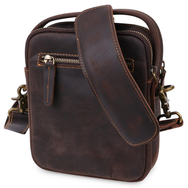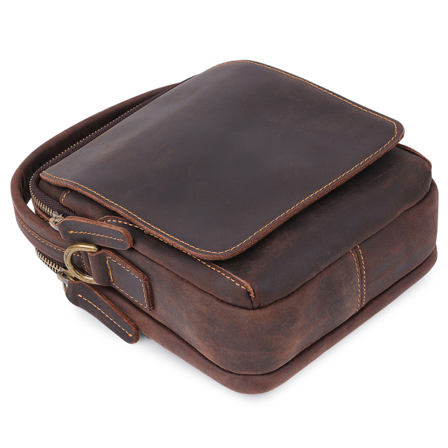 Компактная мужская сумка в шикарном коричневом цвете с винтажной фактурой. Материал изготовления – натуральная кожа с повышенной прочностью и износоустойчивостью. Имеет два основных отделения на молнии и внешние карманы. Спереди оригинально смотрится накидной клапан с магнитом, под которым спрятался карман. Данная модель очень популярна и востребована среди наших клиентов.