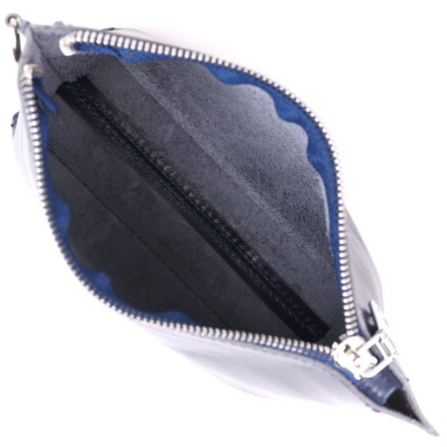Добротная женская косметичка небольшого размера для мелких вещей от украинского производителя. Выполнена из натуральной высококлассной кожи повышенной прочности и стойкости к износу. Цвет изделия – темно-синий с легким отливом, фактура – гладкая и приятная на ощупь. Закрывается аксессуар на молнию серебренного цвета.