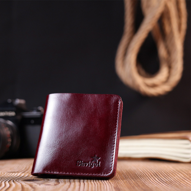 Яркое женское портмоне в современном дизайне и красивом вишневом цвете. Выполнено изделие из натуральной глянцевой кожи высокого качества и отличной устойчивости к износу. Портмоне имеет вместительное отделение для купюр, слоты для пластиковых карточек и монетницу. Закрывается аксессуар на кнопку. Если вы подыскиваете подарок для яркого близкого человека, то данная модель отлично для этого подойдет.