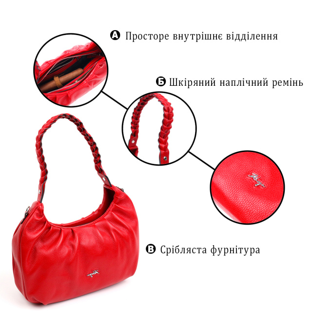 Яркая сумка-багет среднего размера из натуральной крупнозернистой кожи красного цвета.  Изделие имеет надежную плетенную ручку для переноса в руке, а также кожаный съемный и регулируемый по длине, плечевой ремень. Сумка функциональна и удобна в эксплуатации, изделие имеет качественную фурнитуру серебристого цвета и прочную подкладку. Аксессуар упакован в фирменный текстильный мешок Karya. Сумка из натуральной кожи всегда будет отличным подарком любой женщине.