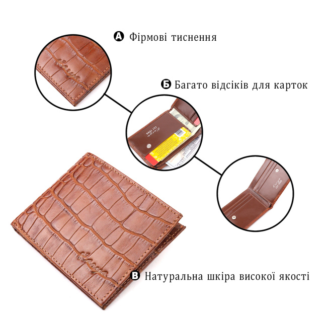Стильный мужской зажим, из натуральной фактурной кожи, с тиснением под крокодила. Изделие очень компактно, но при этом купюры всех номиналов помещаются отлично. Необходимый кожаный аксессуар, который отлично подчеркнет стиль и статус своего владельца. Аксессуар упакован в фирменную коробочку. Изделия из натуральной кожи всегда будут отличным подарком для близкого человека.