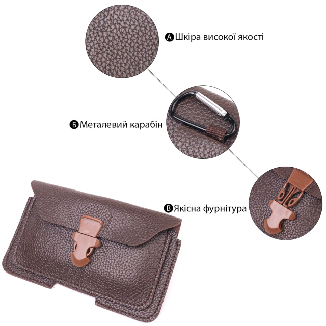 Практичный поясной чехол для телефона пошит из эко кожи флотар, очень плотной и стойкой к износам. Качественная фурнитура, которая представлена в изделии, не только защищает изделие, но и дополняет его. Аксессуар напоминает портмоне. Носить изделие можно в руках, сумке или на брючном ремне. Текстильная подкладка в данной модели отсутствует. Отличный вариант для подарка людям, которые любят практичность и удобство во всем.