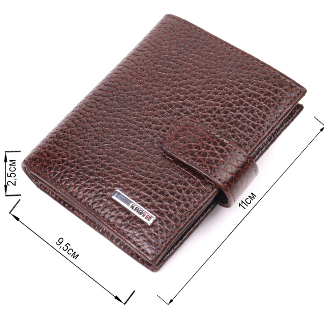 Практичное компактное портмоне из натуральной крупнозернистой кожи, что закрывается хлястиком на кнопку. Изделие имеет большой карман для купюр. Внутри достаточно ячеек для кредиток. Изделие продумано для современного человека. Изделие имеет насыщенный коричневый цвет. Оригинальный аксессуар выгодно выделит вас из толпы. Кошелек станет прекрасным подарком для Ваших близких.