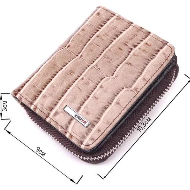 Фактурный женский кошелек с монетницей из натуральной кожи с тиснением под крокодила KARYA 21413 Бежевый