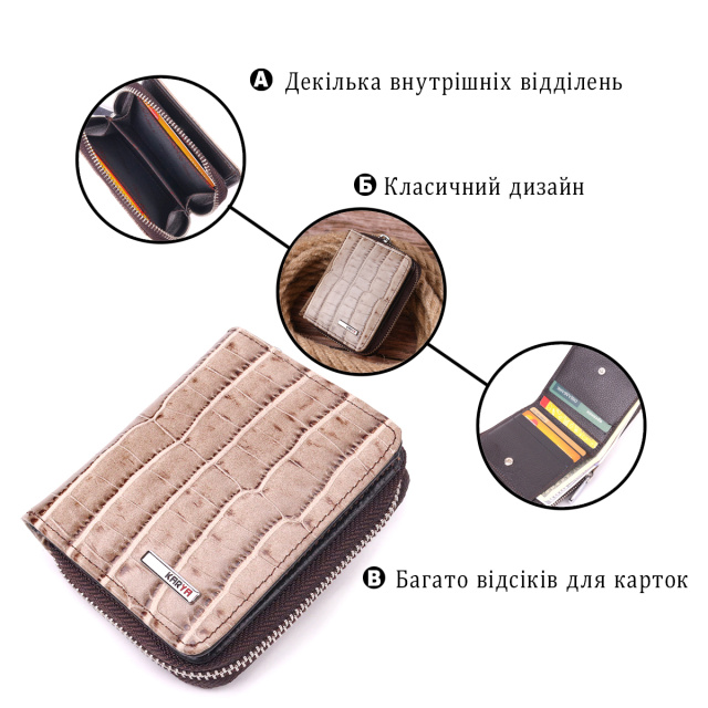 UA MarketКиївJANAВсе товарыТовари та послугиСумки мужскиеКошелькиЖенские кошелькиФактурный женский кошелек с монетницей из натуральной кожи с тиснением под крокодила KARYA 21413 Бежевый