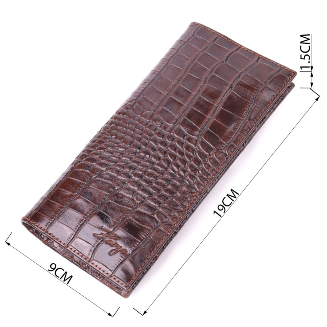 Стильное и надежное портмоне из натуральной фактурной кожи с тиснением под крокодила. Изделие имеет продуманный до мелочей дизайн и качественную фурнитуру, очень практичное. В портмоне помещаются купюры в развернутом виде. Дополнен аксессуар блоком для кредиток, который извлекается, он располагается внутри кошелька в специальном кармашке. Изделие удобно лежит в руке. Отличный подарок для ваших близких.