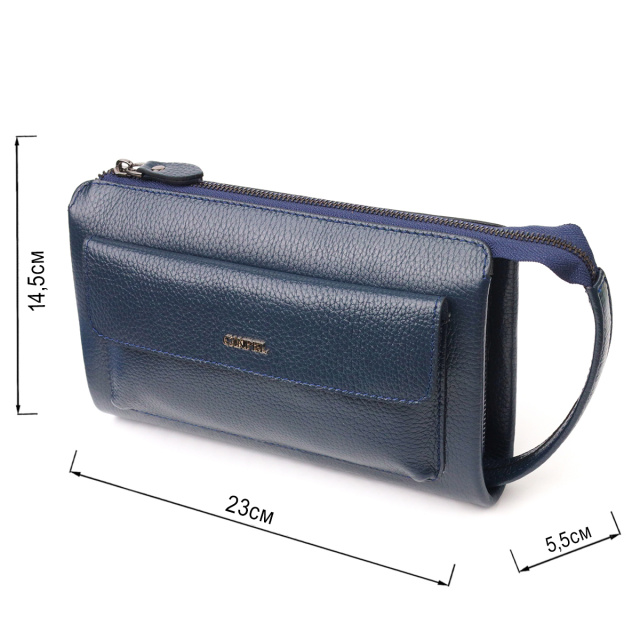 Современный мужской клатч из натуральной зернистой кожи CANPELLINI 21558 Синий
