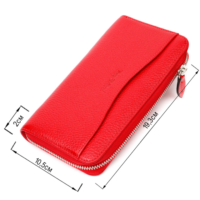 Стильный вместительный женский кошелек из натуральной кожи. Аксессуар состоит из двух широких отделений для купюр, двенадцати ячеек для пластиковых карт, трех прилегающих карманов и монетницы на молнии. В изделии использована качественная фурнитура серебристого цвета. Закрывается кошелек на молнию. Покупая этот кожаный кошелек, Вы не только приобретаете стильную вещь, но и получаете качественный аксессуар, который прослужит не один год.