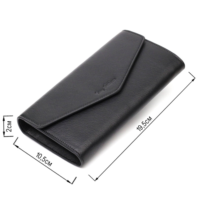 Стильный вместительный женский кошелек из натуральной кожи. Аксессуар состоит из двух широких отделений для купюр, двенадцати ячеек для пластиковых карт, двух прилегающих карманов и монетницы на молнии. В изделии использована качественная фурнитура золотистого цвета. Закрывается кошелек треугольным клапаном на кнопку. Покупая этот кожаный кошелек, Вы не только приобретаете стильную вещь, но и получаете качественный аксессуар, который прослужит не один год.