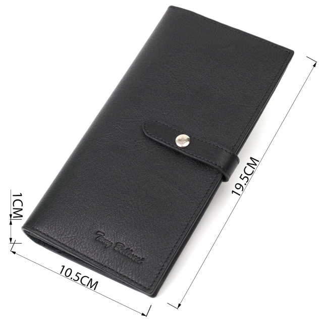 Изящный клатч из натуральной кожи, для современных женщин. Аксессуар состоит из вместительного отделения для купюр, десяти ячеек для пластиковых карт, кармашка на молнии, двух прилегающих карманов и монетницы. В изделии использована качественная фурнитура. Закрывается клатч хлястиком на кнопку, для удобства есть две кнопки, которые позволяют увеличить объем аксессуара.