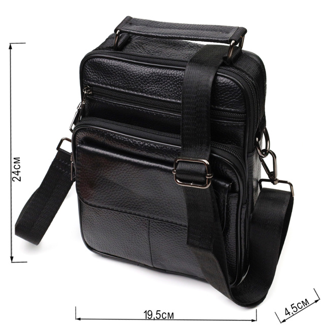 Стильная мужская удобная сумка из натуральной кожи. Аксессуар состоит из основного отделения на молнии, потайного кармана внутри, накладного кармана на молнии, на лицевой стороне, встроенного кармана на молнии на лицевой стороне, встроенного кармана под клапаном на магнитах, на лицевой стороне и двух горизонтальных карманов на молниях сзади. Носить сумку можно на плече, через плечо, а также в руках за ручку. Идеальный вариант как для делового, так и городского стиля.