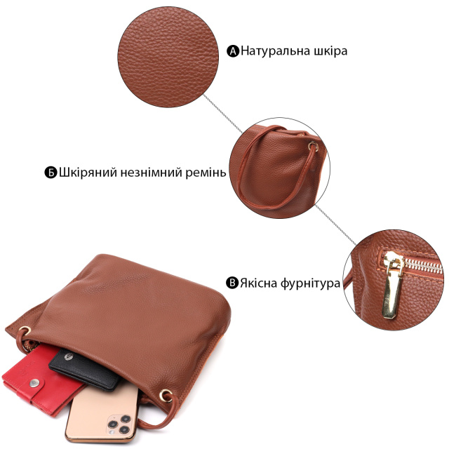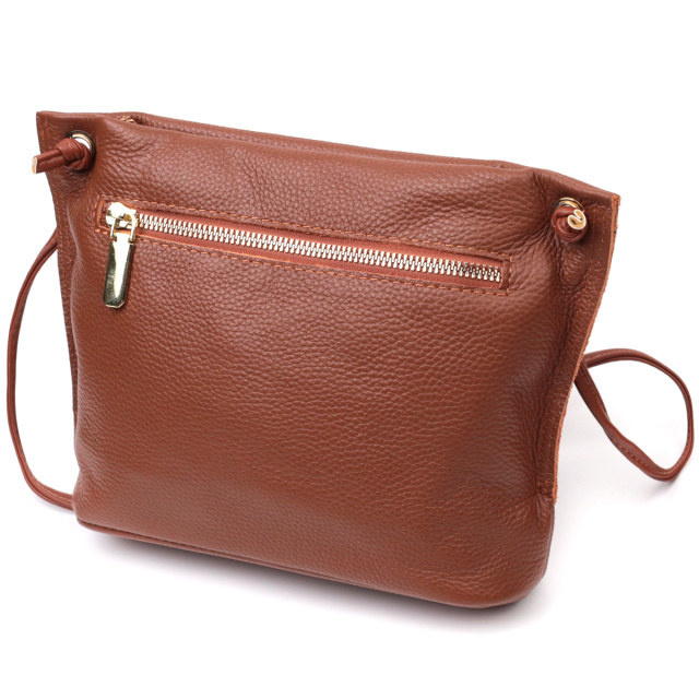 Модная женская сумочка на длинном ремешке. Изделие пошито из качественной натуральной кожи. Аксессуар состоит из одного отделения, что закрывается на молнию, внутри которого карман открытого типа, а также снаружи расположен карман на молнии, на тыльной стороне. Носить сумку можно на плече и через плечо. В аксессуаре использована качественная фурнитура цвета желтого золота.