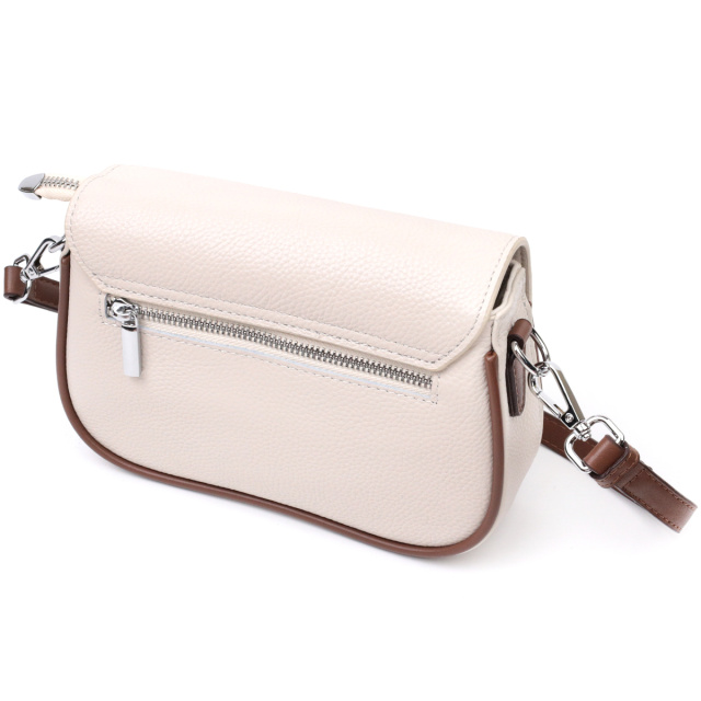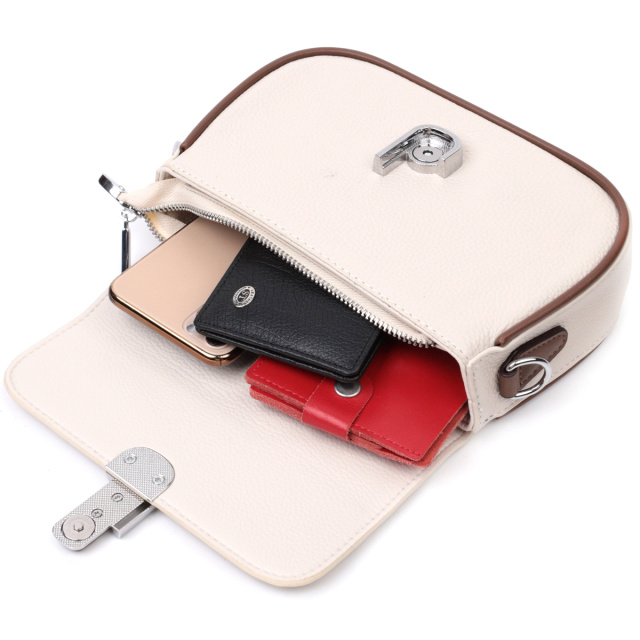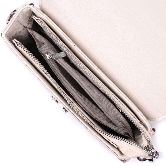 Непревзойденная женская сумка из качественной натуральной кожи, которая долго носится и не теряет свой первоначальный вид. Аксессуар состоит из одного основного отделения внутри которого потайной карман на молнии, карман открытого типа и карман-перегородка, а снаружи, на тыльной стороне расположен карман на молнии. Носить сумку можно в руке, на плече и через плечо, для этого имеется кожаный съемный ремень. В изделии использована качественная фурнитура серебряного цвета. Универсальный вариант сумки как на вечер так и в качестве сумочки на каждый день.