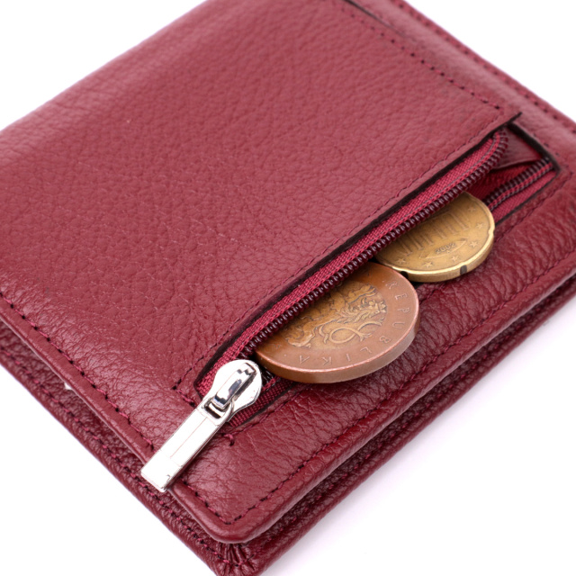 Красивый женский кошелек небольшого размера из натуральной кожи высочайшего качества. Аксессуар состоит из одного вместительного отделения для купюр, кармана на молнии через всю длину, шести ячеек для карт, двух скрытых карманов и наружного кармана на молнии, что отлично прослужит для монет. Портмоне дополнено надежной фурнитурой и крепкой подкладкой. Укомплектован кошелек в фирменную картонную коробку белого цвета. Изделие станет идеальным подарком для девушки любого возраста.