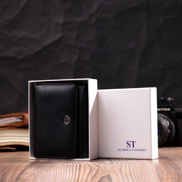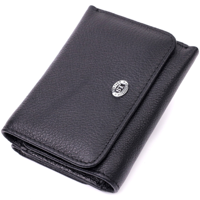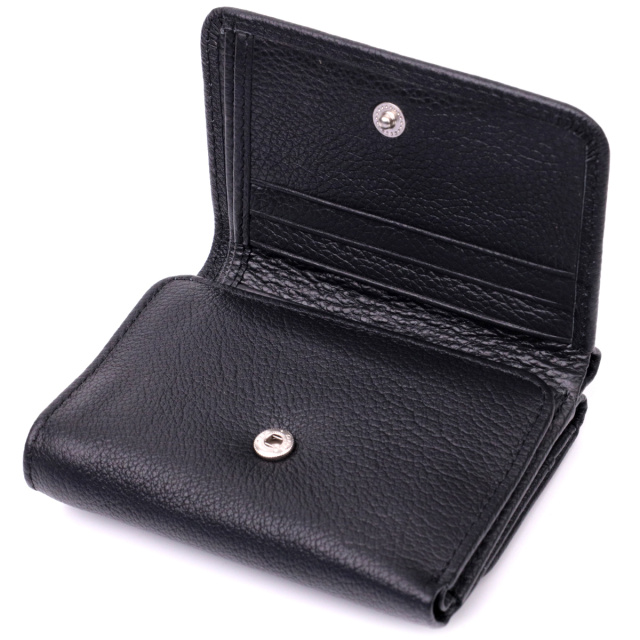 Женский кошелек горизонтального типа и удобного размера из натуральной кожи высочайшего качества. Аксессуар состоит из двух отделений для купюр, наружного кармана с отделением для кредитки, что закрывается клапаном на кнопку, четырех ячеек для карт, двух скрытых карманов и ячейки под пленкой. Портмоне дополнено надежной фурнитурой и крепкой подкладкой. Укомплектован кошелек в фирменную картонную коробку белого цвета. Изделие станет идеальным подарком для женщины любого возраста.