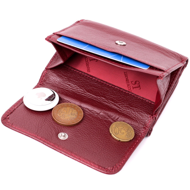 Необычный женский кошелек горизонтального типа и удобного размера из натуральной кожи высочайшего качества. Аксессуар состоит из двух отделений для купюр, наружного кармана с отделением для кредитки, что закрывается клапаном на кнопку, четырех ячеек для карт, двух скрытых карманов и ячейки под пленкой. Портмоне дополнено надежной фурнитурой и крепкой подкладкой. Укомплектован кошелек в фирменную картонную коробку белого цвета. Изделие станет идеальным подарком для женщины любого возраста.