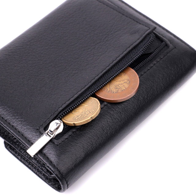 Вместительный кошелек среднего размера из натуральной кожи высочайшего качества. Аксессуар состоит из одного вместительного отделения для купюр, кармана на молнии через всю длину, шести ячеек для карт, четырех скрытых карманов, кармашка под пленкой и наружного кармана на молнии, что отлично прослужит для монет. Снаружи изделие прошито ровной строчкой по краю и украшено тисненым логотипом компании производителя, которое размещено на клапане посередине. Портмоне дополнено надежной фурнитурой и крепкой подкладкой. Укомплектован кошелек в фирменную картонную коробку белого цвета. Изделие станет идеальным подарком для девушки любого возраста.
