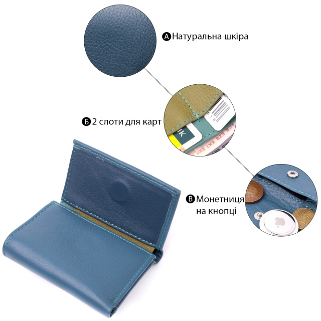 - 1 карман для монет на кнопке под клапаном;