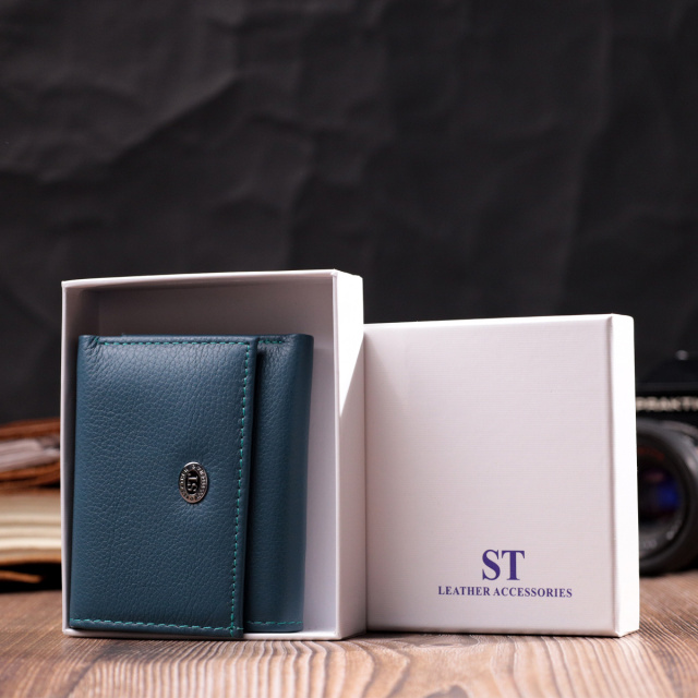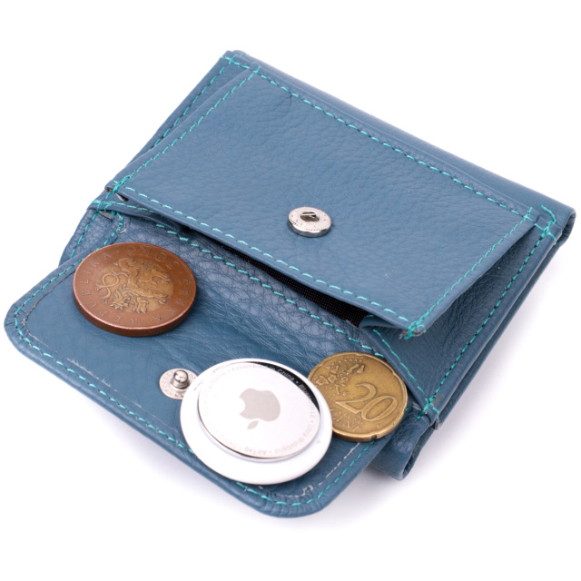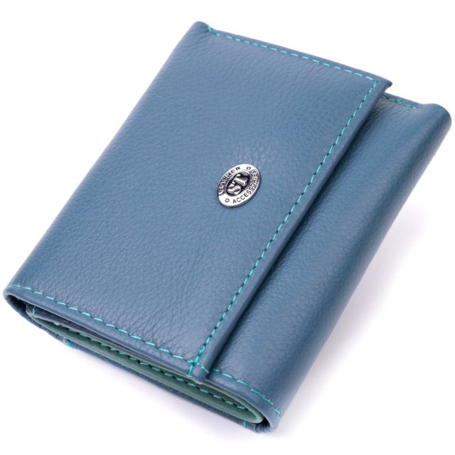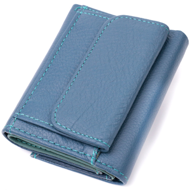 Цветное женское портмоне в три сложения из натуральной кожи высочайшего качества. Акцентом этого кошелька является цвет, точнее несколько цветов - он темно-бирюзового цвета снаружи и многоцветный внутри. Аксессуар состоит из двух вместительных отделений для купюр, двух ячеек для карт и кармана для монет. Снаружи изделие прошито ровной строчкой бирюзового цвета по краю и украшено металлическим логотипом компании производителя. Портмоне дополнено надежной фурнитурой и крепкой подкладкой. Укомплектован кошелек в фирменную картонную коробку белого цвета.